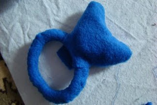 для сыночка я сшила разные погремушки сама. мне показались магазинные довольно простые. я накупила флис разных цветов. предлагаю и вам сделать погремушку малышу своими руками. Нам понадобится ткань размером 20*20 см (мне нравится флис, онмягкий и не осыпается), небольшая полоска синтепона примерно 1,5 см шириной и 20 см длиной, пластмассовая крышечка от бутылки, несколько бусинок, нитки, иголка и ножницы.Из ткани вырезаем 2 кольца внешним диаметром 10 см, внутренним диаметром 4 см – для ручки погремушки, 2 круга диаметром 4 см – дляголовы, и либо треугольные ушки со стороной 1 см – для котика, либо овальные ушки шириной 1 см, длиной 4 см – для зайки, либокруглые ушки диаметром 1 см – для мишки. Можно ушки сделать отдельными деталями, но лучше цельнокроеные с головой, ведь дети всетащат в рот, поэтому все швы должны быть крепкие, лучше все прошить на 2 раза и без съемных деталей. Складываем кольца изнаночной стороной вовнутрь, прошиваем через край по внутреннему диаметру, выворачиваем. Между деталями вставляемполоску синтепона и прошиваем наружный край. Детали головы тоже складываем изнаночной стороной и прошиваем, оставляя незашитымучасток около 3 см в районе шеи, выворачиваем. Бусинки кладем в крышечку, заворачиваем плотно в пакетик, чтобы не рассыпались ивкладываем в голову. Голову пришиваем к ручке. Осталось вышить глазки, носик и ротик. Игрушка готова. Можно вместо ручки использовать имеющуюся резинку для волос или пришить на полосочку с липучками и тогда можно одевать на ручку.